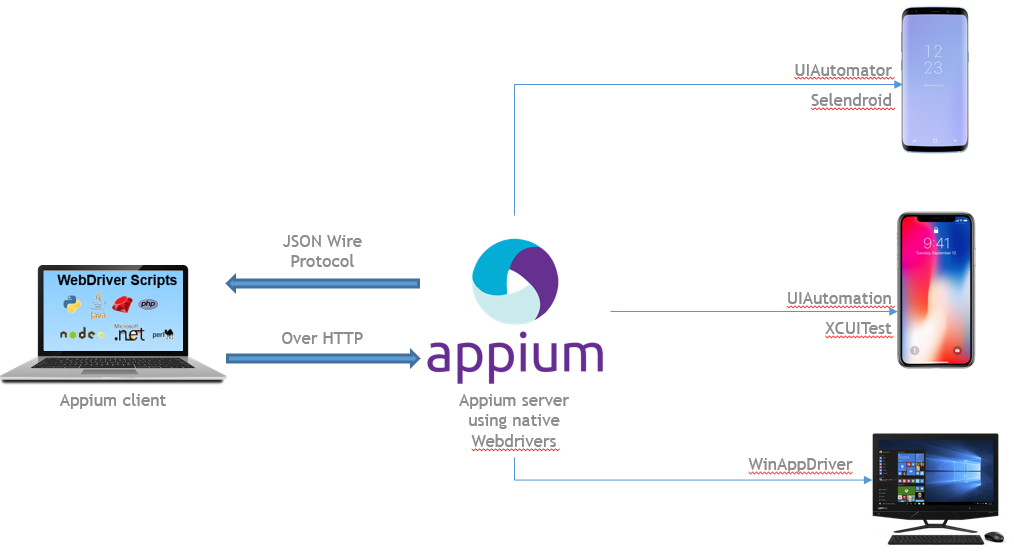 IOS 및 안드로이드 플랫폼에서 실행되며 다양한 프로그래밍 언어를 지원하여 개발자 및 QA엔지니어가 UI요소와 상호작용하며 앱의 기능을 테스트 하는 스크립트를 작성할 수 있도록 도와준다.