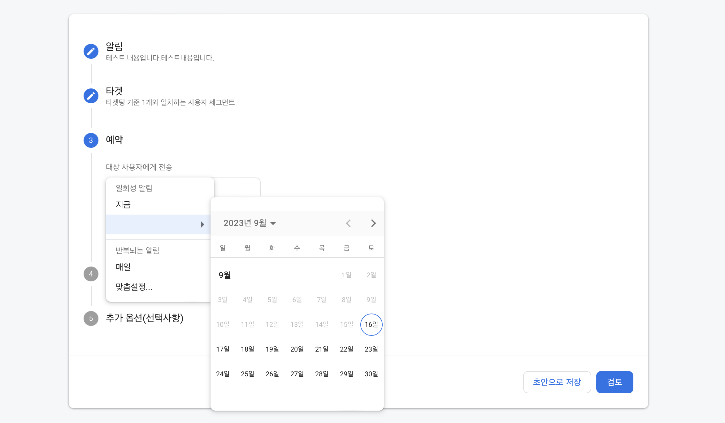 - 메시지를 특정 일자와 시간에 예약하여 전송할 수 있게.