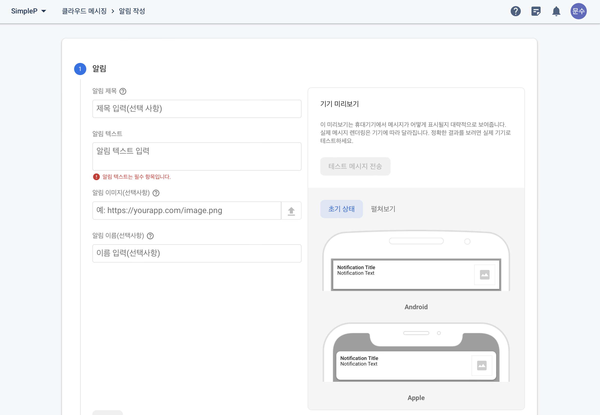 관리자 페이지에서 메시지를 생성, 특정 디바이스 또는 사용자 그룹에게 전송하도록 설정. →