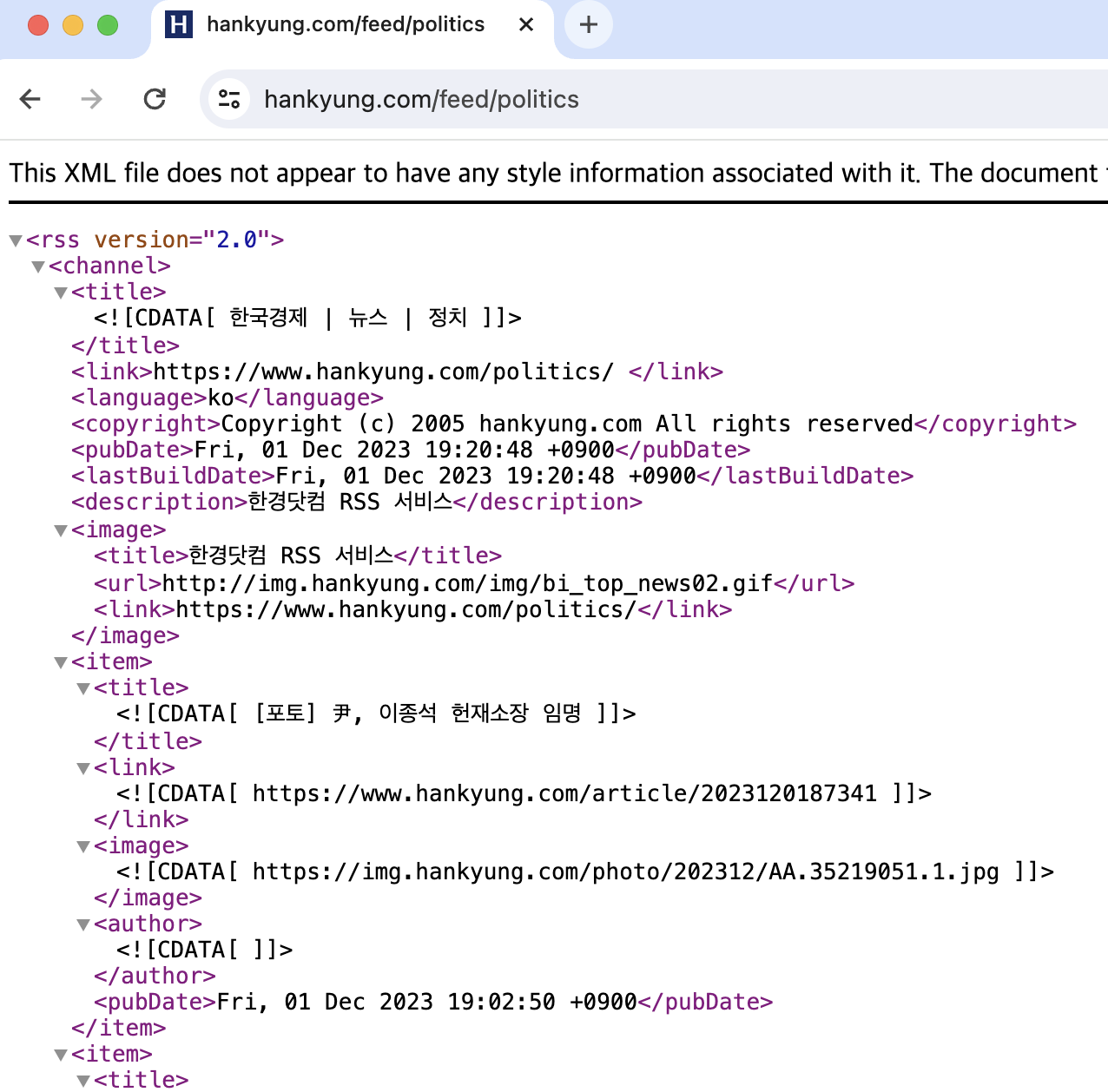 해당 사이트에서 RSS 를 제공해준다.