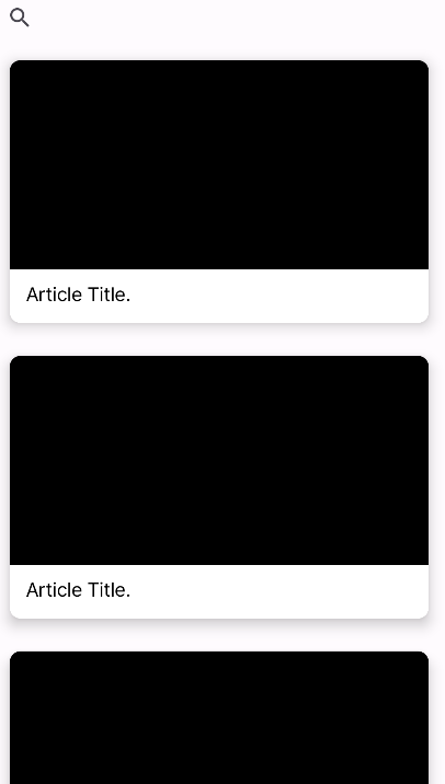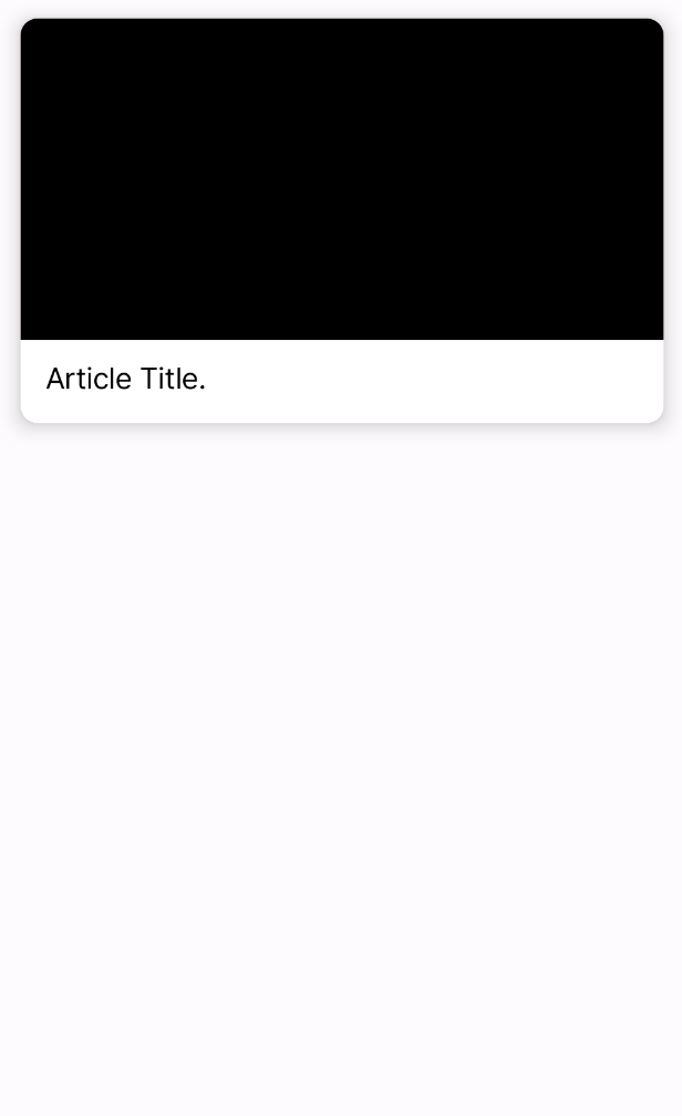 <?xml version="1.0" encoding="utf-8"?> <androidx.cardview.widget.CardView xmlns:android="http://schemas.android.com/apk/res/android" xmlns:app="http://schemas.android.com/apk/res-auto" xmlns:tools="http://schemas.android.com/tools" android:layout_width="match_parent" android:layout_height="wrap_content" android:layout_margin="15dp" android:background="@color/white" app:cardCornerRadius="10dp" app:cardElevation="7dp"> <androidx.constraintlayout.widget.ConstraintLayout android:layout_width="match_parent" android:layout_height="wrap_content"> <ImageView android:id="@+id/ImageView_News" android:layout_width="0dp" android:layout_height="0dp" android:scaleType="centerCrop" app:layout_constraintDimensionRatio="2:1" app:layout_constraintEnd_toEndOf="parent" app:layout_constraintStart_toStartOf="parent" app:layout_constraintTop_toTopOf="parent" tools:background="@color/black" /> <TextView android:id="@+id/TextView_Title" android:layout_width="0dp" android:layout_height="wrap_content" android:layout_marginTop="10dp" android:paddingStart="15dp" android:paddingEnd="15dp" android:paddingBottom="15dp" android:fontFamily="@font/pretendard" android:textColor="@color/black" android:textSize="18sp" app:layout_constraintBottom_toBottomOf="parent" app:layout_constraintEnd_toEndOf="parent" app:layout_constraintStart_toStartOf="parent" app:layout_constraintTop_toBottomOf="@id/ImageView_News" tools:text="Article Title." /> </androidx.constraintlayout.widget.ConstraintLayout> </androidx.cardview.widget.CardView>이렇게 작성한다면 다음과 같은 결과를 기대할 수 있다.